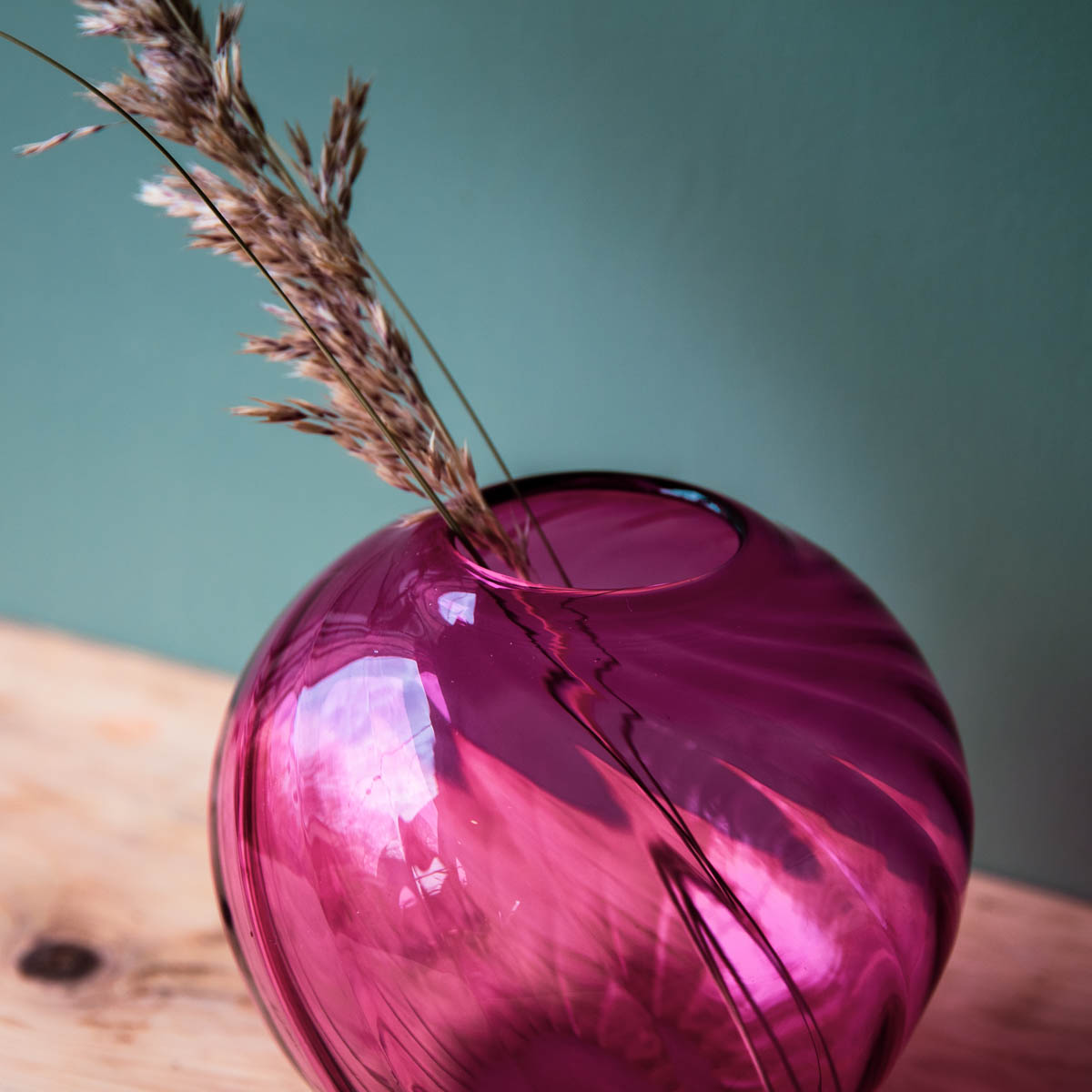 Mundgeblasene Glasvase mit gedrehten Riefen von MISSEMAI Studio aus Kopenhagen. Wunderschönes Stück für eindrucksvolle Blmenbuketts, jedes ein Unikat durch die aufwendige Produktion.
