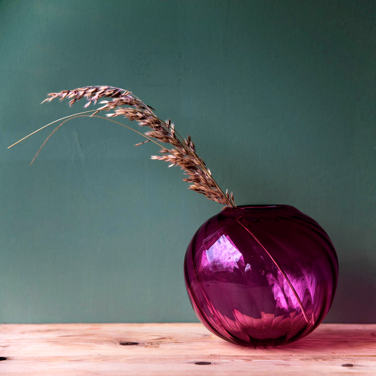 Mundgeblasene Glasvase mit gedrehten Riefen von MISSEMAI Studio aus Kopenhagen. Wunderschönes Stück für eindrucksvolle Blmenbuketts, jedes ein Unikat durch die aufwendige Produktion.